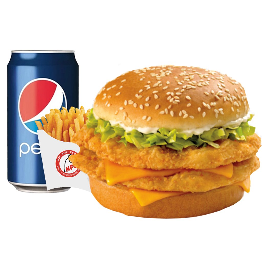 Double Chicken Fillet Burger With Slice of Cheese Fries Can Of Drink Or Any Small Side