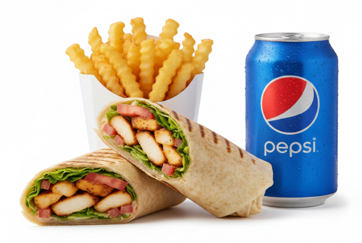 Tower Wrap with Hash brown & Cheese, Fries Can Of Drink Or Any Small Side