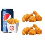 6 Pcs Spicy OR BBQ Wings Includes Reg Fries & Can Of Drink OR Small Side